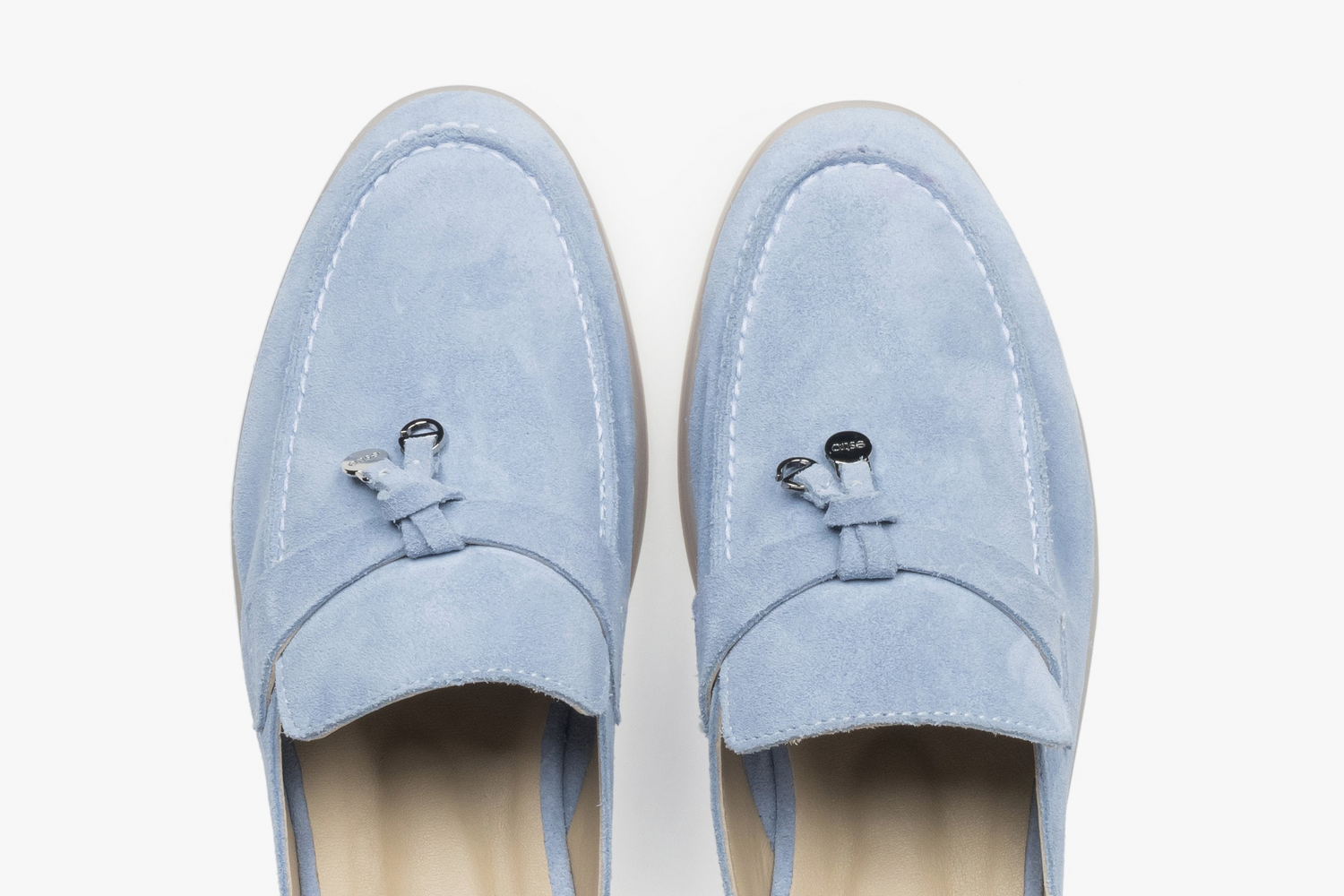 Przywołaj błękit letniego nieba z mulami w odcieniu baby blue, stworzonymi z ultra-miękkiego włoskiego weluru, który idealnie dopasowuje się do wąskiej stopy. Ten pastelowy model z ozdobnym chwostem dodaje stylizacjom dziewczęcej lekkości, nie rezygnując z luksusowego wykończenia z naturalnej skóry. To must-have sezonu letniego dla każdej miłośniczki modowego premium.