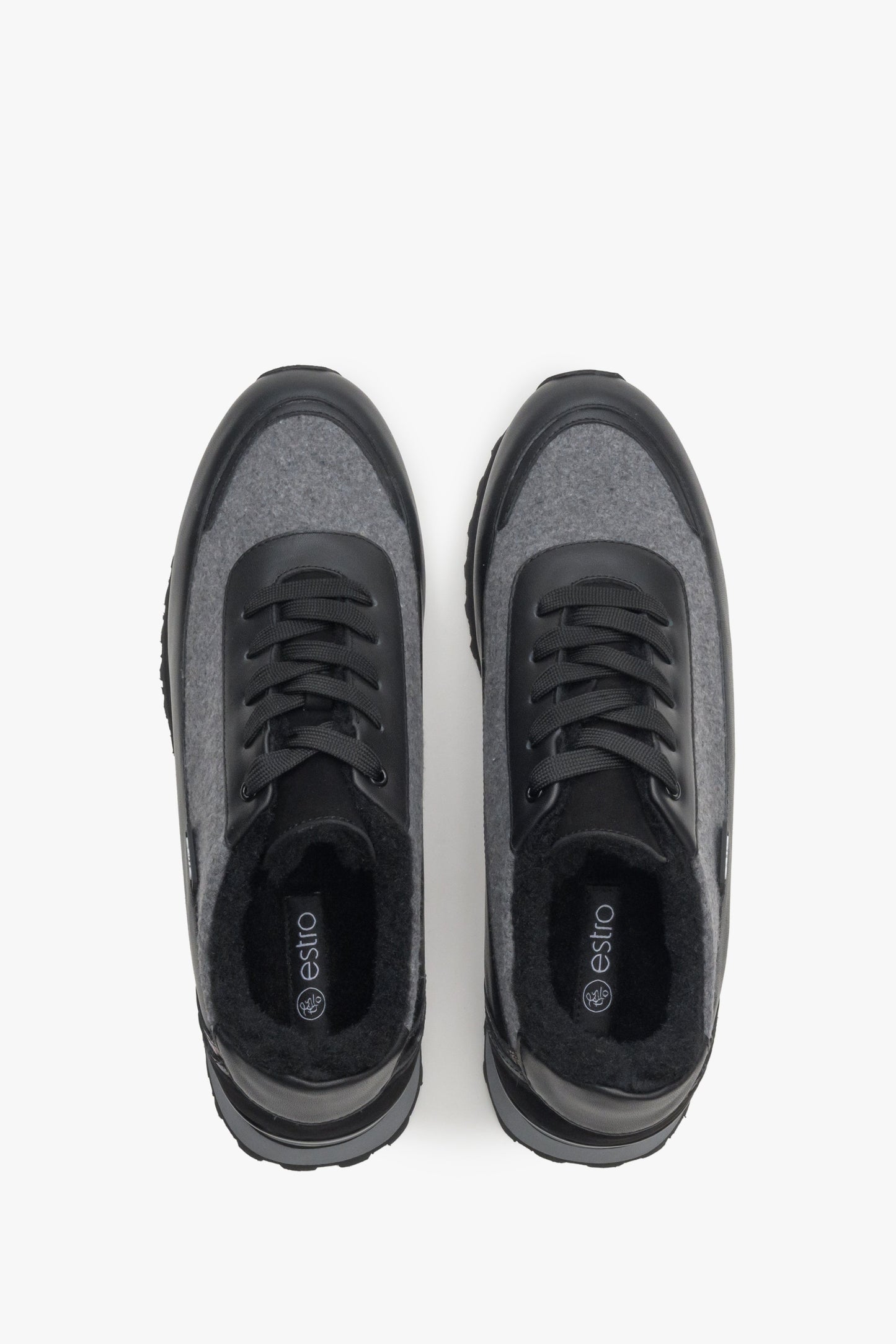 Czarno-szare skórzane sneakersy damskie na zimę z futrzanym wypełnieniem Estro ER00114141